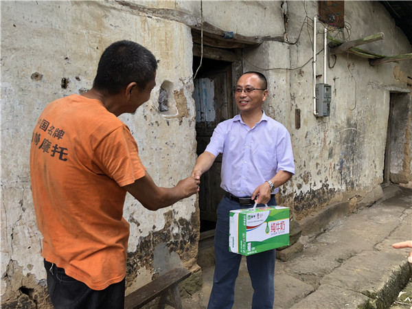 随后一行人代表所属的行政二支部、地质调查院支部、矿产勘查院支部,对支部对口帮扶的23户贫困户进行了慰问,将带去的油、米、牛奶等慰问品送到了贫困户的手中。