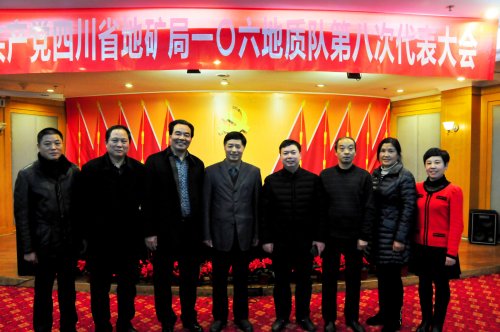 1222,备受全队党员干部职工关注的中共四川省地矿局106地质队第八次党代会在温江隆重召开。56名党员代表及特邀、列席代表肩负着全队266名党员和全队职工的重托,齐聚一堂,共商新时期党建工作和单位发展大计。局党委常委、机关党委书记李成冰、局巡视员王德明应邀光临大会。