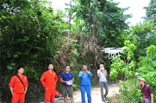 终于接近目的地,打开手里的GPS定位,却发现滑坡的中心位置在距此向北茂密的灌木丛中。虽然直线距离只有300米,却由于这里山高坡陡,荆棘遍地,竟然找不到一处下脚的地方,行走起来十分艰难,为躲避灌木丛中锋利的荆棘刺,他们只好一手拿仪器,另一只手护住脸庞,防止刮伤,匍匐着一步步前行。突然,一声大叫骤然响起:“蛇!有蛇!!”让所有人本就忐忑的心猛然绷紧。定睛望去,一条长达两米的大蛇在前方游走,斑斓的花纹告诉经验丰富的地质队员,这是一条毒蛇。或许是受了那一声大喊的惊吓,毒蛇仓皇游动,迅速消失在灌木丛中。队员们赶紧折断就近的灌木枝,不停地拍打周围的灌木丛,直到确定安全后,方才一步一滑地紧张工作。