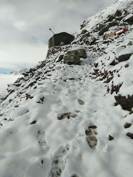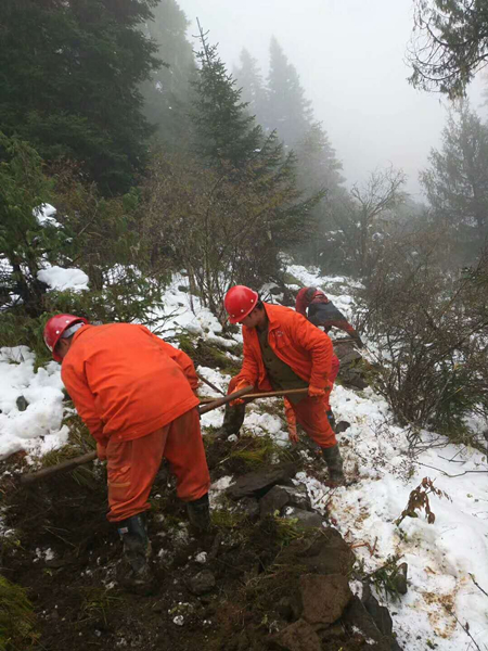 2018年4月,小金项目正式启动,项目组不畏艰险,克服高海拔、空气稀薄、寒冷等自然条件因素,整合人力、物力、财力,通过车辆运、马帮驼等方式,耗时2个月完成了钻机搬迁及安装工作,保障施工有序开展。施工过程中,大雪封住了通往驻地的道路,生活补给无法按时送到,职工就靠自带的干粮充饥;大雪压垮了驻地的帐篷,职工就自行清理重新搭建帐篷;零下十几度的夜晚,职工就靠柴火取暖;强紫外线晒得职工皮肤黝黑,甚至患上了皮肤病。但这些都没有把职工吓到,小金项目组众志成城,迎难而上,在克服一个又一个困难后,顺利完成了项目实施。