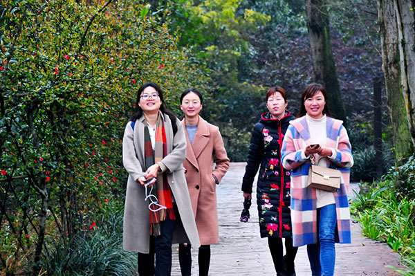 上午9点,全队女职工相约来到温江绿园绿道,兴致勃勃地开始健步走活动。小雨后的绿道是那么的静谧,微风中飘着泥土的芬芳和淡淡的花香,让人心旷神怡。面对着生机盎然的植物,翠绿的草地,粉红的桃花,轻拂的杨柳,女神们个个心怀喜悦,有的拿出手机,拍一张最美的笑容;有的微清嗓子,哼两曲醉人的小调;有的点击抖音,留几许婀娜的身姿。真正是你对着三月的风嫣然一笑,所有的桃花就都开了。
