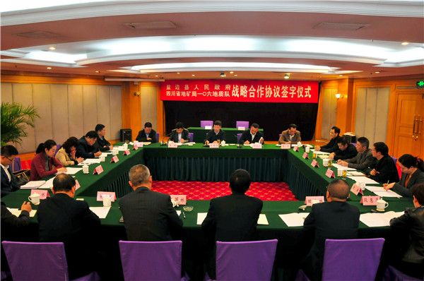 双方都对这次合作给予了高度重视。盐边县委副书记、县政府县长谭兴忠率盐边县委常委、政法委书记苟军,以及县政府副县长、公安局长赖生洪、县政府副县长朱林光和盐边县相关部门负责人亲临温江;四川省地矿局党委常委、机关党委书记李成冰率局对外合作处等相关处室负责人一行出席签字仪式;106队党委书记李可主持签字仪式。