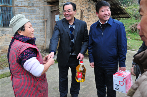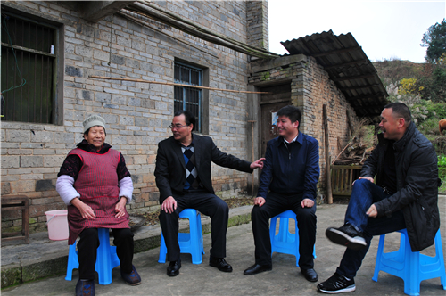 12月13日,106队党委书记李可一行赴大梁子村宣讲十九大精神,调研指导脱贫攻坚工作,并进行走访慰问。李可一行首先来到八户特困村民家中,与贫困户交流沟通,了解贫困户家庭生产生活情况及目前存在的实际困难,鼓励他们树立战胜困难的信心,激发内生动力,早日实现脱贫,并代表106队给贫困户送上慰问品。