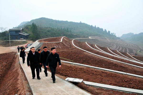 在村水土保持项目现场,李成冰详细听取了106地质队副总工程师蒋先忠关于在大梁子村开展土壤地质调查项目的情况汇报。就该项目的落实,李成冰指出:“发挥行业优势,助力脱贫攻坚”是局党委一直以来践行的定点帮扶思路。在定点帮扶甘洛县的工作中证明,我们的这一帮扶思路是可行的、有效的,是能够为当地发展提供实实在在支持的。李成冰要求:这次在大梁子村开展土壤地质调查,是我局牵头联系邻水县以来实施的第一个专业帮扶项目,一定要组织精干力量认真实施,为水保项目建成后的农特产业发展提供科学依据,也为我们下一步在全县开展农业地质、旅游地质、地热资源调查等专业帮扶开好头、亮好相。