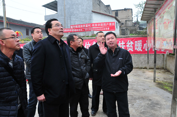 在大梁子村村委会,李成冰首先向镇、村干部和党员代表传达了中央经济工作会议关于脱贫攻坚工作的最新部署,然后仔细查阅了106地质队党委与大梁子村村委开展结对共建的内业资料,查看了大梁子村基层党组织建设情况。李成冰指出:开展城乡党建结对共建行动,是中央、省委关于加强城乡基层党组织建设、深化实施“两化”互动、城乡统筹发展战略的重要决策部署,也是落实定点帮扶系列要求的重要抓手。李成冰强调:局党委结合定点扶贫实际,主动采取“一对一”精准对接的方式,开展驻村帮扶单位(部门)与帮扶村党组织结对共建行动,目的就是推动结对双方党组织互帮互助常态化,不断强化基层党组织的政治功能和服务功能,切实筑牢脱贫攻坚战斗堡垒。结对双方党组织一定要继续在组织联建、党员联管、活动联办、人才联育、资源联用、产业联促、治理联抓“七联”上狠下功夫,抓好落实,抓出成效。