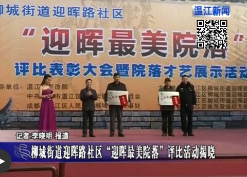 冬日暖阳下,广场上飘扬着优美的乐曲。表彰大会上柳城街道办主任向我队授予了“迎晖最美院落”一等奖奖牌及证书。“迎晖最美院落”的活动激励着全体物业公司的同志们,更加努力,迎接新的挑战!(物业公司  税丹萍)