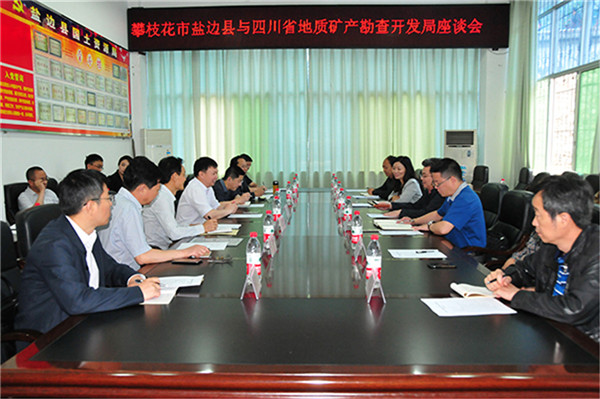 盐边县与四川省地矿局的合作渊源流长,四川省地矿局106地质队长期在盐边县开展地质工作,合作的时间长领域广,与盐边县有着深厚的情谊。在盐边县副县长柳瑛主持的座谈会上,双方进行了真诚务实的交流。盐边县国土资源局就该县石墨矿和地热资源分布及储量情况进行了汇报;省地矿局106队总工程师就近年在盐边地质找矿取得的成果和下步工作建议作了汇报;县政府副县长柳瑛就该县温泉资源、矿产资源开发、旅游项目打造、康养医疗建设、优质农业发展等方面与参会人员进行了广泛交流。盐边县委常委、政法委书记苟军充满深情地说,盐边县和省地矿局的感情就象是革命战争年代红军和根据地的感情,是真正的鱼水关系。多年来,省地矿局特别是106地质队为盐边的经济发展做了大量的工作,盐边县早在2011年就和省地矿局106地质队签订了战略合作协议,在地质找矿、技术咨询、技术力量培养、矿山环境恢复治理、人才交流等多方面开展了广泛深入的合作,取得了良好的成效。特别是2009年攀西钒钛磁铁矿整装勘查工作开展后,在攀枝花市委、市政府的领导下,在双方共同努力下,整装勘查取得了丰硕的成果,县委县政府对与四川地矿局的合作充分肯定。在新的形势下,希望四川省地矿局和106地质队一如既往支持关心盐边县的经济社会发展,为盐边实现新突破,为建设新盐边强力助推。