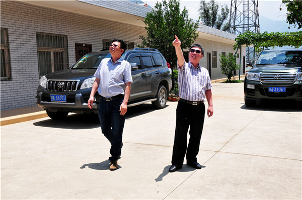 李成冰与106队队长马健在米易长坡实物地质资料库检查工作