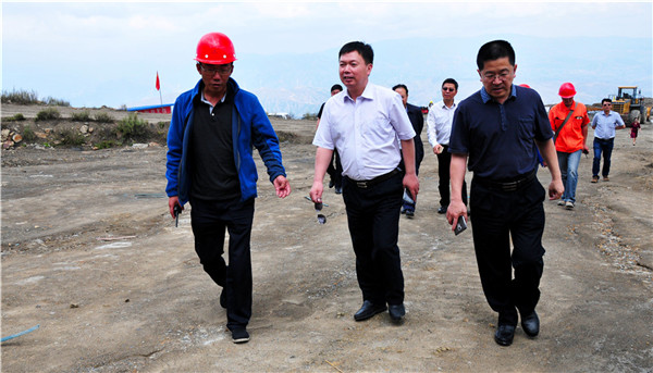 李成冰一行在地质工程集团公司施工的攀枝花机场滑坡治理工程现场