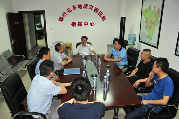 7月3日,四川省地矿局党委常委、机关党委书记李成冰率局党群工作部主任黄劲松一行来到四川省地矿局攀枝花地灾应急中心,检查指导攀枝花市地质灾害隐患排查工作。
