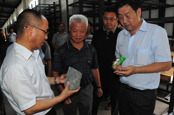106队总工田小林向考察团汇报了实物库的整体情况,孟宪来兴致盎然的查看了库存的各种岩心标本,并对攀枝花钒钛磁铁矿、石墨、稀土等矿种的品位、分布、勘探及开发等进行了咨询,对实物库的建设及管理表示了赞赏。孟宪来希望106队要一如既往的搞好长坡基地建设,加强实物库地质资料的收集及管理,更好的服务民生,服务地方经济。(叶磊)