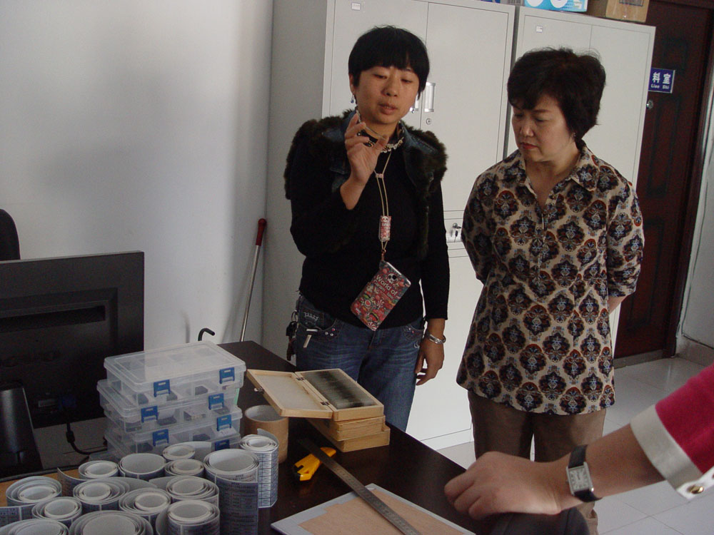 工作人员讲解实物库情况