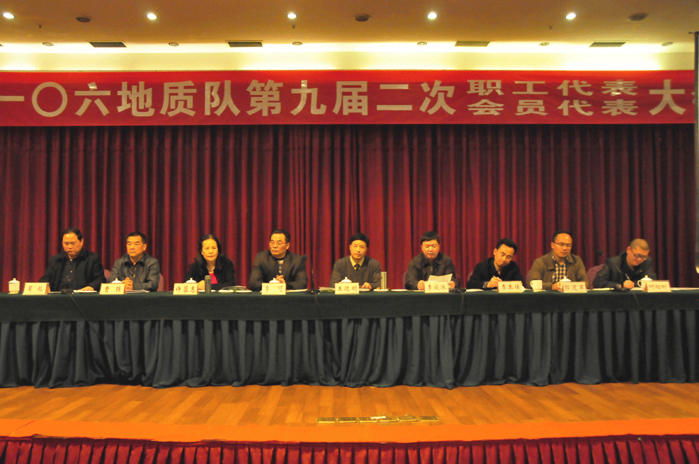 局党委常委、纪委书记王德明和局工会副主席许蓉惠参加会议并作重要讲话。王书记对106队在“十二五”期间的经济健康发展,职工收入大幅提高,共建共享取得实效表示了充分肯定,特别对106队在攀西整装勘查工作中所做的贡献给予了高度赞扬。他要求106队认真总结“十二五”期间所取得的成绩与经验,在“十三五”开局之年,在开创新领域,培育新项目上狠下功夫,真抓实干,借助省、局倾力打造“西部石墨之都”的平台,在攀西地区发扬“钒钛之都探矿先锋队”的光荣传统,继续发挥攀西开发先锋的标兵示范作用。